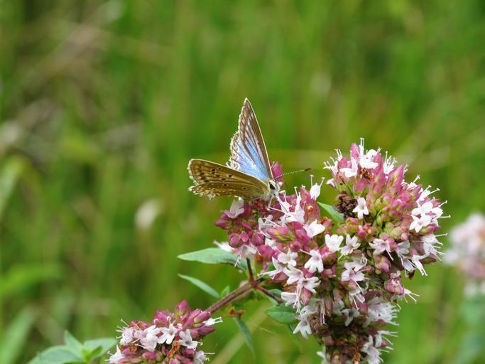 Keywords: butterfly blue flower oregano nature wild europe country aromatic petit azur plant forage