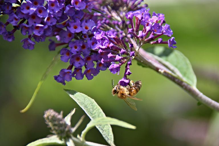 Keywords: butterfly bush garden violet summer lilac insect flight insect inflorescence purple in the garden close wasp