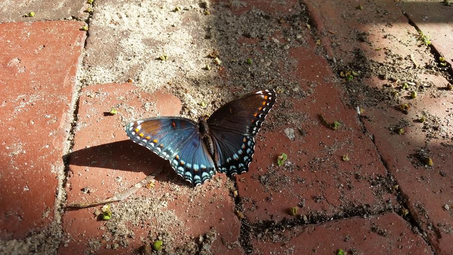Keywords: butterfly close up butterflies animal insect colorful bug nature wings butterfly wings ground bricks pattern red bricks blue brown