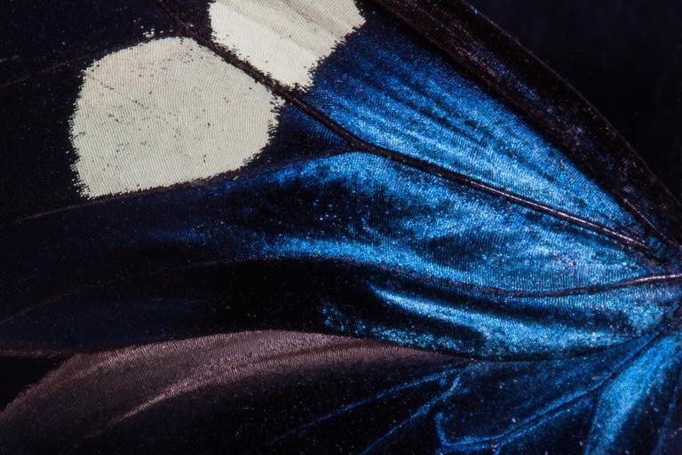Keywords: butterfly exotic south america amazon iridescent scale wing scales ultramarine blue brown insect wing color white macro structure background fund