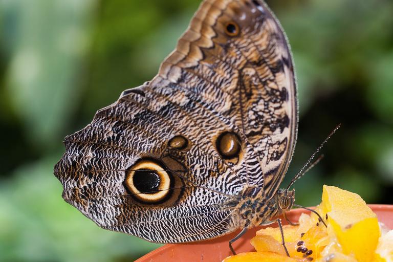 Keywords: butterfly eyes exotic tropics tropical scale wing scales brown ocher insect wing structure background food intake