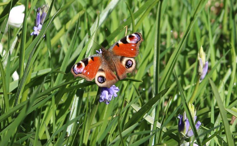 Keywords: butterfly grass bluebells flowers nature insect outdoors fauna flora