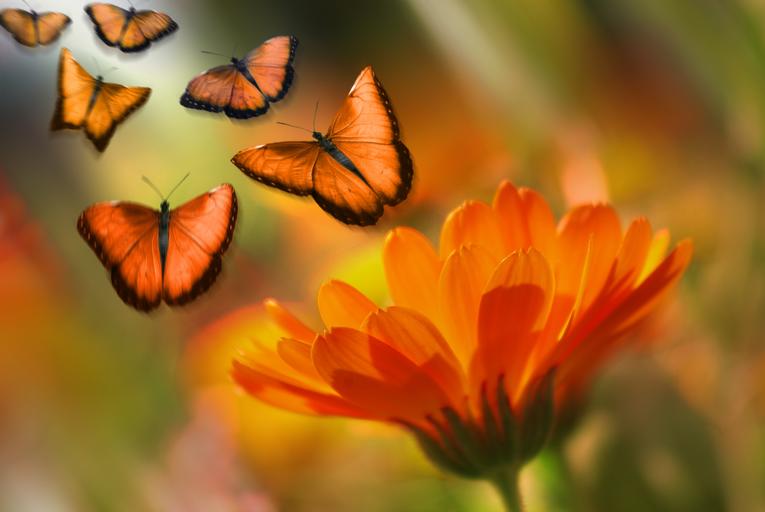 Keywords: butterfly insect animal flowers marguerite summer orange photo montage plant nature composing