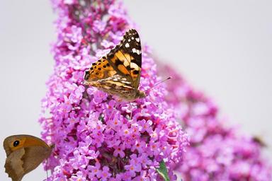 Keywords: butterfly lilac summer lilac pink pink flower blossom bloom animal insect flight insect wild life nature wing landed close text freedom negative space wildlife photography garden plant garden in the garden painted lady vanessa cardui edelfalter summer