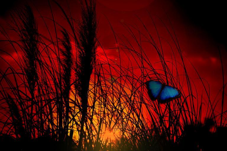 Keywords: butterfly nature plant grass growth close sunshine by background lighting sunset green environment ecology field light bill seem mood atmosphere wallpaper background fragility ease contemplative