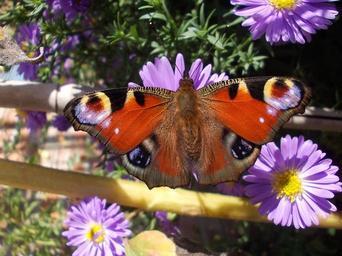 Keywords: butterfly peacock butterfly aster purple blue close insect peacock nature yellow garden flower blossom bloom red brown