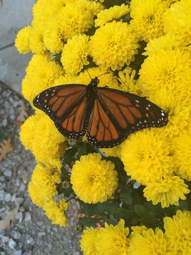 Keywords: butterfly yellow flowers mums chrysanthemums viceroy viceroy butterfly wings michigan nature fall