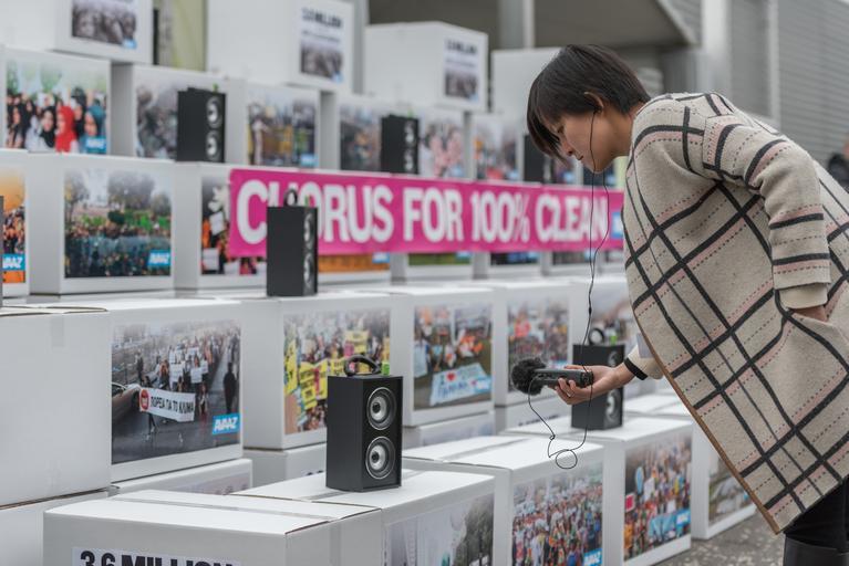 Keywords: cop21 cop21 press cop21press cop21 press conference cop21pressconference ecology environmental politics environmentalpolitics france paris un unfccc world climate change conference 2015 worldclimatechangeconference2015 action avaaz climate change climatechange environment europe greenhouse gas greenhousegas le bourget lebourget west europe westeurope shop A choir of global voices installed by Avaaz activists is playing as delegates walk into the last hours of negotiations to get a climate treaty. #100%cleanenergy A choir of global voices installed by Avaaz activists is playing as delegates walk into the last hours of negotiations to get a climate treaty. #100%cleanenergy