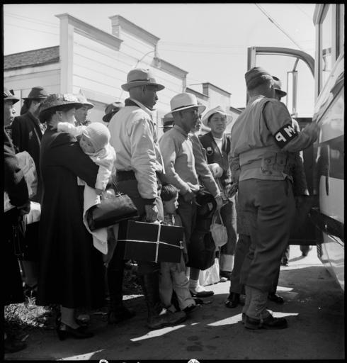 | Keywords: Byron, California. The moment has come for these farm families of Japanese ancestry to board the bu . . . - NARA - 537463.jpg Scope and content The full caption for this photograph reads Byron California The moment has come for these farm families of Japanese ancestry to board the bus that will take them from their homes and ranches to the Assembly center 65 miles away General notes 537463 Local identifier 210-G-C108 Department of the Interior War Relocation Authority 02/16/1944 - 06/30/1946 NARA-Author Lange Dorothea 1895-1965 Photographer 1372774 <br /> Still Picture Records Section Special Media Archives Services Division NWCS-S National Archives at College Park 8601 Adelphi Road College Park MD 20740-6001 1942-05-02 Record group Record Group 210 Records of the War Relocation Authority 1941 - 1989 Record group ARC 537 Central Photographic File of the War Relocation Authority compiled 1942 - 1945 Series ARC 536000 File unit File unit ARC Variant control numbers NAIL Control Number NWDNS-210-G-C108 Other versions <gallery> File Byron _California _The_moment_has_come_for_these_farm_families_of_Japanese_ancestry_to_board_the_bu_ _ _ _-_NARA_-_537463 tif tif File Byron _California _The_moment_has_come_for_these_farm_families_of_Japanese_ancestry_to_board_the_bu_ _ _ _-_NARA_-_537463 jpg jpg </gallery> NARA-cooperation PD-USGov Dorothea Lange Japanese American internment processing in Byron California |