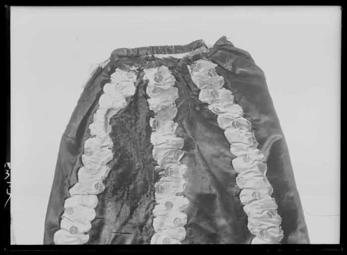 | Keywords: Byxor, "Bohemiens klädning" - Livrustkammaren - 1883.tif LSH artwork sv Knäbyxor av svart atlassiden Rynkade upptill bak och fram på sidorna Smal byxlucka fram bredd 260 mm som knäppes i sidorna med en knapp på vardera sidan Knappar av trä klädda med svart siden diameter 22 mm Knäppning fram innanför luckan med tre knappar av trä klädda i svart siden Sprund upptill mitt bak längd 160 mm med två tränsade hål på varje sida samt en kort och en längre spänntamp med knapphål Knapphålet på den längre är endast uppklippt inte tränsat <br/>Benen rynkade i nederkant samt har sprund i nederkanternas yttersidor längd 150 mm <br/>Längsgående randig dekor i form av vågklippta veckade band i rosa siden atlas enligt gula liggaren taft med spridda silverpaljetter <br/>Foder i ljust linne tuskaft <br/>Gåva tillsammans med gnr 17/46-17/192 av H M Konungen Gustav V genom chefen för Kungliga Husgerådskammaren original caption end other date century 18 silk Färg svart d1 - dräkt - yttermaterial material sidenatlas - wood d5 - dräkt - knappar och spännen material trä - silk Färg svart d5 - dräkt - knappar och spännen material sidenatlas - silk Färg rosa d4 - dräkt - passpoaler band kantning uppslag material siden - sequins Färg silver d4 - dräkt - passpoaler band kantning uppslag material paljetter - linen Färg benvit d2 - dräkt - foder material linne size mm 825 size mm 620 size mm 305 ben nedtill g 759 LRK place of origin original filename LN_B15960_018840 58029 inventory number LRK 21502 1883 CC0 Byxor Bohemiens klädning - Livrustkammaren - 1883-negative tif <gallery caption Different images of same object > File Byxor Bohemiens klädning - Livrustkammaren - 70369 tif File Byxor Bohemiens klädning - Livrustkammaren - 27593 tif File Byxor Bohemiens klädning - Livrustkammaren - 78928 tif </gallery> Trousers Media contributed by LSH dim-with multiple size templates Media contributed by LSH 2014-11 |