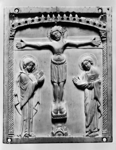 | Keywords: Byzantine - Crucifixion - Walters 71113.jpg  This plaque depicts the Crucifixion with the mourning Virgin and Saint John the Evangelist Apart from the inclusion of a canopy supported by columns this ivory also differs from its contemporaries in its style; here the artist has carved his figures with much rounder faces and softer folds of drapery late Other date century 10 Medieval ivory elephant cm 13 5 10 6 0 6 accession number 71 113 1553 Henry Walters city Baltimore Walters Art Museum Henry Walters Acquired by Henry Walters 1924 Early Christian and Byzantine Art Baltimore Museum of Art Baltimore 1947 Five Thousand Years of Faces Bellevue Art Museum Bellevue 1983 Medieval Games of Love and War The Walters Art Gallery Baltimore 1995-1996 Cross References Dumbarton Oaks Washington 2011 place of origin Byzantine Empire Walters Art Museum license Byzantine ivory in the Walters Art Museum Decorative and applied arts of Byzantine Empire Media contributed by the Walters Art Museum needs category review |