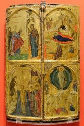 Keywords: Byzantine icon BM 1852.1-02.1.jpg Icon with four episodes from the life of Christ the Annunciation top left the Nativity top right Christ's baptism bottom left and the Transfiguration bottom right - 1310 1320 tempera gilding gesso wood cm 38 8 26 44 Institution British Museum Department of Prehistory and Europe Room 40 59484 object history Thessaloniki monastery of St Mary Deipara Egypt credit line ProvenanceEvent transfer British Library British Museum 1852 accession number 1852 0102 1 formerly 1852 0102 1 1852 0102 2 own photo date 2012-02-11 User Jastrow/cc-by-2 5 artwork license PD-old-100-1923 photo license Cc-by-2 5 14th-century icons of Byzantine Empire Room 40 British Museum Taken with Nikon D300s Taken with Sigma 17-50mm F2 8 EX DC OS HSM Monastery of St Mary Deipara |