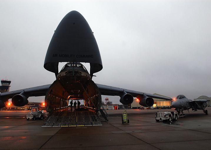 | Keywords: C-5 Galaxy before loading a F-14 Tomcat.jpg en A Lokheed C-5 Galaxy before loading a Grumman F-14 Tomcat de Eine Lokheed C-5 Galaxy vor dem laden einer Grumman F-14 Tomcat http //www navy mil/view_image asp id 42850 direct link to the picture http //www navy mil/management/photodb/photos/070205-N-1082Z-037 jpg Mass Communication Specialist 3rd Class Jason R Zalasky 2007-02-05 U S Navy photo PD-USGov-Military-Navy Transport of vehicles by C-5 Galaxy Lockheed C-5 Galaxy nose loading doors Transport of aircraft by aircraft F-14 Tomcat museum aircraft |