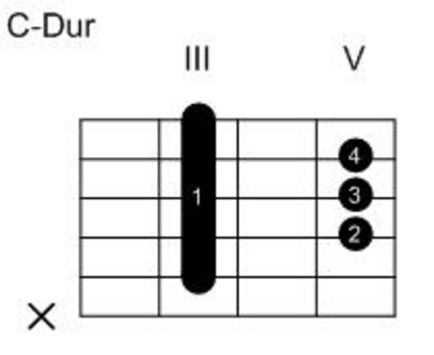 Keywords: C-Dur Barré.jpg Eigenanfertigung 2005-11-05 own assumed Red Rooster Guitar chords in standard tuning