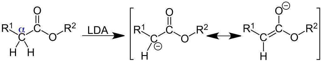 Keywords: C,H-Acidity Esters V.1.svg en C H-Acidity of Esters de C H-Acidität von Estern Deprotonierung und Bildung von Enolaten own Jü 2012-09-08 Carboxylate esters Cc-zero