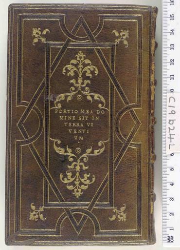 | Keywords: C. Plinii Secundi Naturalis Historiae prima (-tertia) pars. 4 vols. - Lower cover (c19b24).jpg  Style Interlacing ribbon/strapwork Mottoes; Caption Lower cover; Colour Brown; Edge Unspecified exhibition history Decorative Technique Tooled in gold Painted; Cover Material Goatskin includes morocco turkey etc c 1540 Paris bound for J Grolier by Jean Picard Volume described by H M Nixon Bookbindings from the library of Jean Grolier p 27 n 44-47 ; see A Hobson Renaissance book collecting Appendix I Grolier's bindings classified by workshop pp 223-229 IV France 1538-1547 c Jean Picard i With solid or open tools p 226 object history Text 1536 1535 1538; Venice; Grolier Jean 1479-1565 object type Cc-zero place of creation Binding France place of discovery Unspecified British Library image http //www bl uk/catalogues/bookbindings/LargeImage aspx RecordId 020-000006786 ImageId ImageId 42998 Copyright BL C Plinii Secundi Naturalis Historiae prima -tertia pars 4 vols Uploaded with GWToolset C Plinii Secundi Naturalis Historiae prima -tertia pars 4 vols - Lower cover c19b24 http //www webarchive org uk/bldatasets/bindings/7543_4 jpg Bookbinding 16th-century bookbinding British Library Bookbindings |