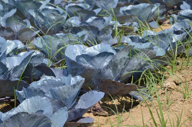 Keywords: cabbage purple growing farm garden organic weeds leaves healthy vegetables