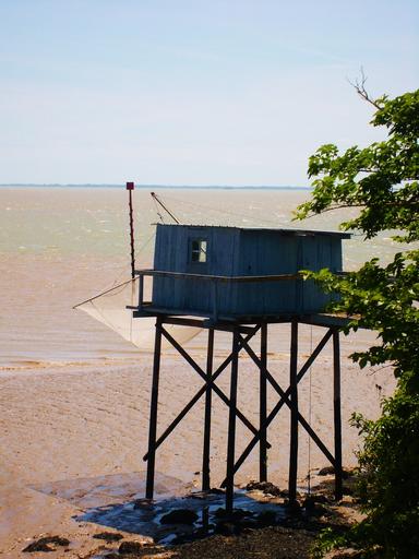 Keywords: cabin on stilts fisherman's hut net fishing fishermen's hut france tahmasebi on gironde sea water