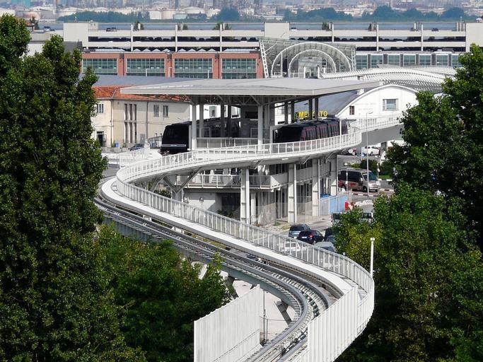 Keywords: cable car automatic-cars stop venice-people-mover-line tracks summer june italy venice