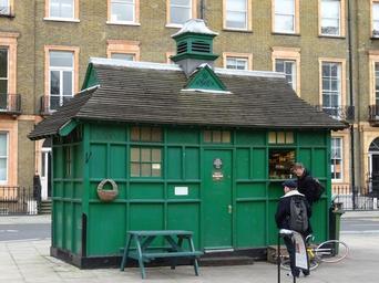 | Keywords: outdoor The Cabmen's Shelter Fund was established in London, England, in 1875 to run shelters for the drivers of hansom cabs and later hackney carriages (taxicabs).[1] By law, cab drivers could not leave the cab stand while their cab was parked there. This made it very difficult for them to obtain hot meals and could be unpleasant in bad weather. If they drove to a pub to buy food then they would have to pay somebody to look after their cab while they were inside, otherwise it was likely to be stolen. The Earl of Shaftesbury and other worthies therefore took it upon themselves to set up a charity to construct and run shelters at major cab stands. These shelters were small green huts, which were not allowed to be larger than a horse and cart, as they stood on the public highway. Between 1875 and 1914, 61 of these buildings were built around London. Most were staffed by an attendant who sold food and (non-alcoholic) drink to the cabbies and were provided with a kitchen in which the attendant could cook this food and also food provided by the cabbies themselves. The attendant was not generally paid, but was expected to make an income from these sales. The shelters were also provided with seats and tables and books and newspapers, most of them donated by the publishers or other benefactors. Most could accommodate ten to thirteen men. Gambling, drinking and swearing were strictly forbidden. Thirteen of the shelters still exist and are still run by the Cabmen's Shelter Fund.[2] All are now Grade II listed buildings. They are located at: Chelsea Embankment SW3 - close to junction with Albert Bridge, London Embankment Place WC2 - close to the Playhouse Theatre Grosvenor Gardens SW1 - to the west side of the north gardens Hanover Square, London W1 - on the north side of the central gardens Kensington Park Road W11 - outside numbers 8-10 Kensington Road W8 - close to the junction of Queen's Gate SW7 Pont Street SW1 - close to the junction of Sloane Street Russell Square WC1 - Western Corner (relocated to here from Leicester Square) St. George's Square, Pimlico SW1 - on the north side Temple Place WC2 - opposite side of the road from the Swissötel Howard Thurloe Place, Kensington SW7 - in the middle of the road opposite the Victoria and Albert Museum Warwick Avenue, London W9 - centre of the road, by Warwick Avenue tube station Wellington Place NW8 - near to Lord's Cricket Ground During annual Open House London Heritage Days, the public gets a chance to see inside some of the shelters, normally the exclusive reserve of cab drivers. The Cabmen's Shelter Fund was established in London, England, in 1875 to run shelters for the drivers of hansom cabs and later hackney carriages (taxicabs).[1] By law, cab drivers could not leave the cab stand while their cab was parked there. This made it very difficult for them to obtain hot meals and could be unpleasant in bad weather. If they drove to a pub to buy food then they would have to pay somebody to look after their cab while they were inside, otherwise it was likely to be stolen. The Earl of Shaftesbury and other worthies therefore took it upon themselves to set up a charity to construct and run shelters at major cab stands. These shelters were small green huts, which were not allowed to be larger than a horse and cart, as they stood on the public highway. Between 1875 and 1914, 61 of these buildings were built around London. Most were staffed by an attendant who sold food and (non-alcoholic) drink to the cabbies and were provided with a kitchen in which the attendant could cook this food and also food provided by the cabbies themselves. The attendant was not generally paid, but was expected to make an income from these sales. The shelters were also provided with seats and tables and books and newspapers, most of them donated by the publishers or other benefactors. Most could accommodate ten to thirteen men. Gambling, drinking and swearing were strictly forbidden. Thirteen of the shelters still exist and are still run by the Cabmen's Shelter Fund.[2] All are now Grade II listed buildings. They are located at: Chelsea Embankment SW3 - close to junction with Albert Bridge, London Embankment Place WC2 - close to the Playhouse Theatre Grosvenor Gardens SW1 - to the west side of the north gardens Hanover Square, London W1 - on the north side of the central gardens Kensington Park Road W11 - outside numbers 8-10 Kensington Road W8 - close to the junction of Queen's Gate SW7 Pont Street SW1 - close to the junction of Sloane Street Russell Square WC1 - Western Corner (relocated to here from Leicester Square) St. George's Square, Pimlico SW1 - on the north side Temple Place WC2 - opposite side of the road from the Swissötel Howard Thurloe Place, Kensington SW7 - in the middle of the road opposite the Victoria and Albert Museum Warwick Avenue, London W9 - centre of the road, by Warwick Avenue tube station Wellington Place NW8 - near to Lord's Cricket Ground During annual Open House London Heritage Days, the public gets a chance to see inside some of the shelters, normally the exclusive reserve of cab drivers. |