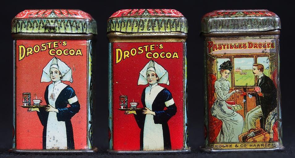 Keywords: cacao container box tin food package old product
