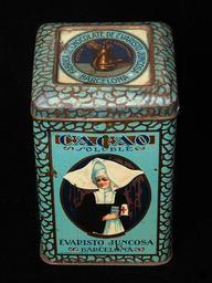 | Keywords: Cacao Evarsto Juncosa tin, pictuers of Barcelona, photo6.JPG Very old product that is not produced and not sold any more Note that some tins may look the same but when looked for carefully there are some slight differences Photographed at a collector of Droste memorabilia and old tin cans For more info see http //www tincollectors nl/ tincollectors nl or email info tincollectors nl own 2014-01-25 14 29 41 Alf van Beem CC-Zero Trademarked Cocoa tins Evarsto Juncosa cocoa | ||||