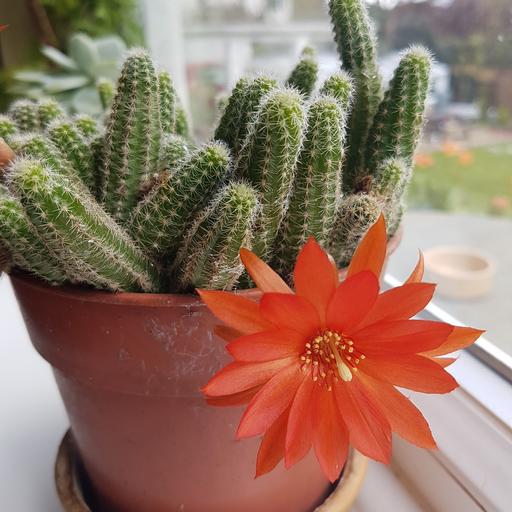 Keywords: cactus flower red red blossom flowering potted plant