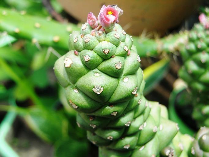 Keywords: cactus green flowers red young