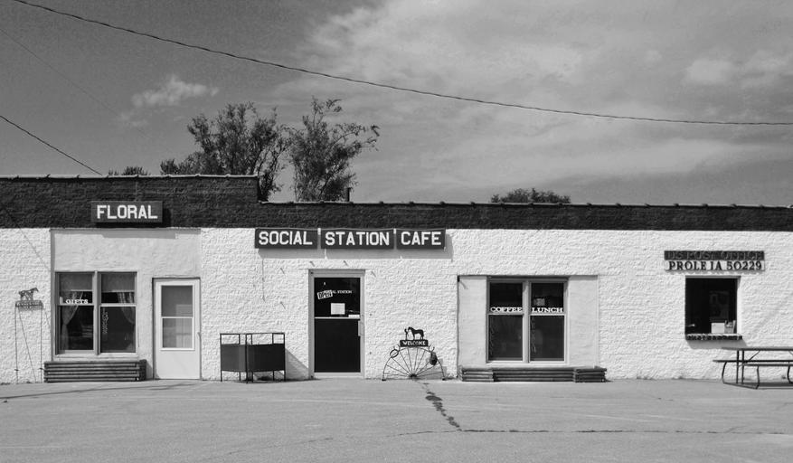 Keywords: cafe post office store restaurant black and white roadside cafe