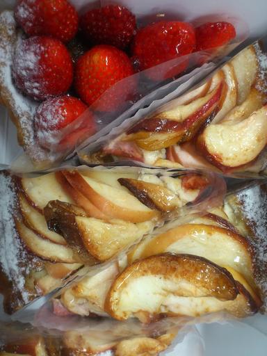 Keywords: cake strawberry apple cut triangle pie