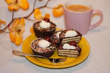 Keywords: cake tart pastries small sweet dessert bake delicious eat bakery desserts cream birthday cake muffin chocolate coffee piece of cake piece of pie coffee party cherry chocolate cake plate floral