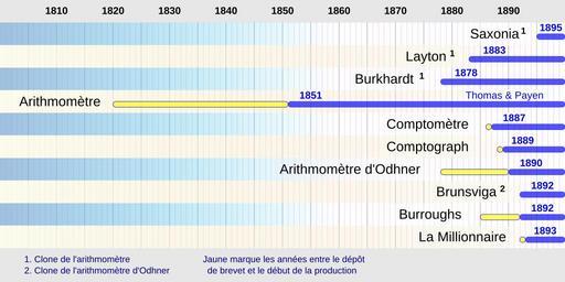 | Keywords: Calculateurs mécaniques de bureau en production au XIX siècle.svg fr Calculateurs mécaniques de bureau en production au XIX siècle Ce fichier est une traduction de DesktopMechanicalCalculators_inProduction_intheXIXCentury svg own Ezrdr 2009-12-28 thumb left 2 Même graphe mais en Anglais Mechanical calculators |