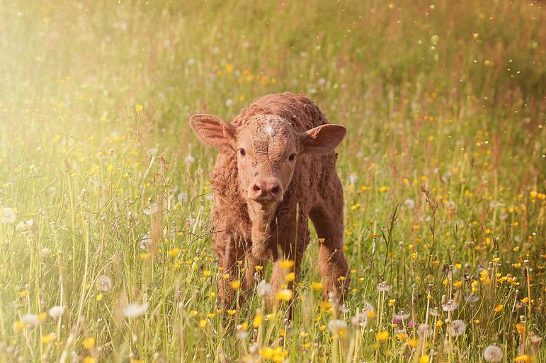 Keywords: calf young animal beef livestock cattle grass meadow pasture animal cute small ruminant