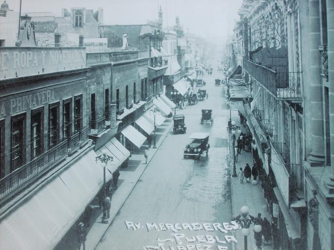 Keywords: Calle de mercaderes.JPG en Mercaderes St circa 1910 es Calle de Mercaderes hoy 2 Norte 100 hacia 1910 own Gustavo Velarde Copyright just expired Pd-old History of Puebla city Awnings Automobiles in Mexico Balconies in Mexico Buildings in Puebla city Streets in Puebla city Black and white photographs of Mexico Source own |