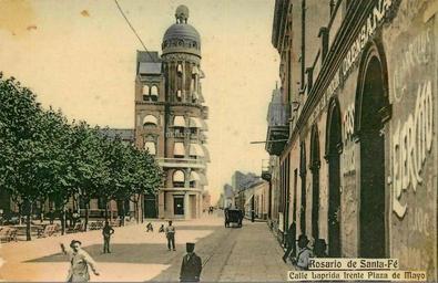 | Keywords: Calle Laprida frente a Plaza de Mayo.jpg es Vista del edificio La Bola de Nieve y parte de la Plaza de Mayo en Rosario Aproximadamente 1910 Tarjeta Postal author 1910 PD-AR-Photo History of Rosario Argentina Squares in Rosario Argentina Argentina in the 1910s 25 de Mayo Square Rosario Carriages in Argentina Tram tracks in Rosario Argentina |