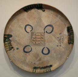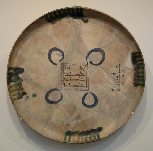 Keywords: Calligraphic plate, Iraq, Abbasid period, 10th century AD, earthenware with black and green painting over opaque white glaze - Cincinnati Art Museum - DSC04168.JPG en Exhibit in the Cincinnati Art Museum Cincinnati Ohio USA This artwork is in the public domain because the artist died more than 70 years ago Photography was permitted in the museum without restriction 2013-05-14 11 38 09 own Daderot cc-zero Abbasid pottery in the Cincinnati Art Museum Uploaded with UploadWizard |