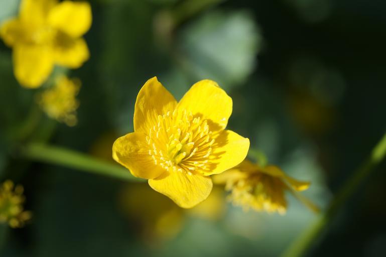 Keywords: caltha palustris close hahnemann foot greenhouse yellow marsh plant grow blossom bloom bloom
