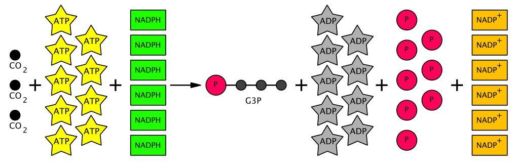 Keywords: Calvin cycle overall.svg en Schematic representation of the overall equation of the Calvin cycle 2012-02-28 own Peter coxhead cc-zero Uploaded with UploadWizard Calvin cycle