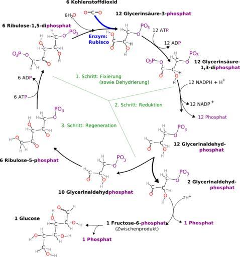 Keywords: Calvinzyklus.png Calvinzyklus im Detail self-made with Incscape korrigierte Fassung 2007-06-26 Lanzi Calvin cycle