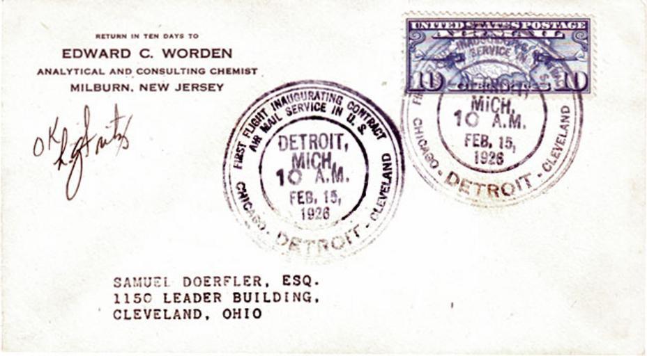 MAKE A MEME View Large Image CAM 6 First Flight Feb. 15, 1926.jpg First flight cover carried over CAM-6 from Detroit to Cleveland on the first commercial U S Air Mail flight February 15 1926 Notes The contractor for this route was the Ford Motor Company operating as ...