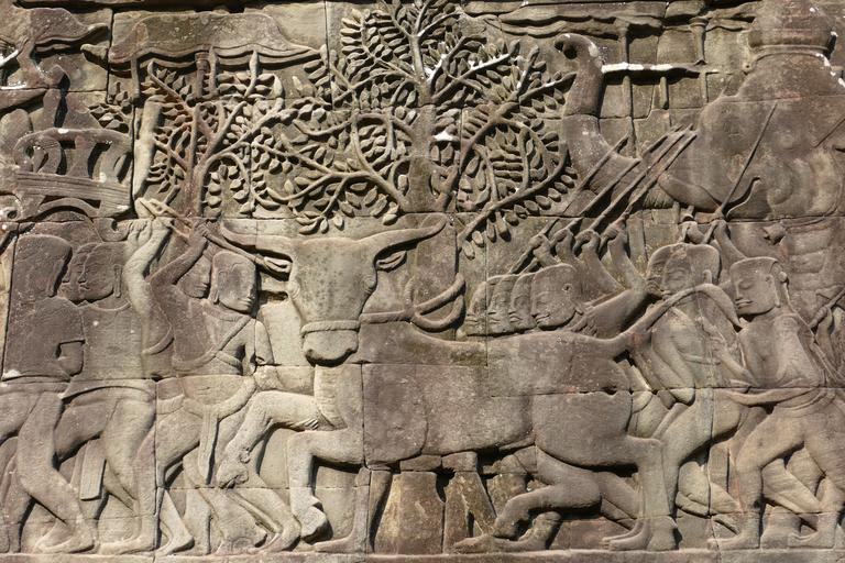 Keywords: cambodia angkor asia temple complex history bayon temple stone relief architecture world heritage unesco unesco world heritage site historically unesco world heritage monument angkor thom relief image ox beef agriculture bauer tree