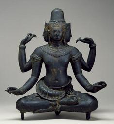 Keywords: Cambodian - The Hindu God Brahma - Walters 542734.jpg The last king to build great monuments at the city of Angkor Jayavarman VII was a Buddhist During his reign sculptors created images that seem more personable less remote Hindu gods such as Brahma the creator had a place in the religious thought of the time and after the king's death there was a Hindu resurgence late 12th-early 13th century Bàyon bronze cm 29 5 with tang cm 31 5 accession number 54 2734 27940 Brahmanical Temple Bot Phram Bangkok Alexander B Griswold Monkton July 1949 presented to the Breezewood Foundation December 1960 inv no 490 originally no 863 Walters Art Museum Henry Walters Bequest of A B Griswold 1992 none Unearthly Elegance Buddhist Art from the Griswold Collection The Walters Art Gallery Baltimore 1995 place of origin Angkor Cambodia Walters Art Museum license Southeast Asian art in the Walters Art Museum Sculptures from Cambodia Media contributed by the Walters Art Museum needs category review Brahma in sculpture