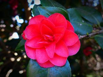 Keywords: camellia flower blossom bloom red plant close spring nature