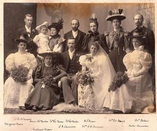 | Keywords: mildred fyson mildredfyson margaret fyson margaretfyson frank la touche franklatouche de burgh deburgh blair cameron katie cameron katiecameron vintage wedding family bride fashions wedding bouquet weddingbouquet groom bridesmaids wedding party weddingparty william francis digges la touche williamfrancisdiggeslatouche william robert digges la touche williamrobertdiggeslatouche katherine la touche katherinelatouche constance mary yeo constancemaryyeo constance mary de burgh constancemarydeburgh ernest macartney de burgh ernestmacartneydeburgh john alexander cameron johnalexandercameron donald allan cameron donaldallancameron elizabeth taylor elizabethtaylor 1897 ryde sydney new south wales newsouthwales australia society ipswich queensland doctor cameron doctorcameron photo border Newspaper article about this wedding: trove.nla.gov.au/newspaper/article/85768510?searchTerm=ma... Back row L - R: Donald Allan Cameron, William Francis Digges La Touche (child), Mrs. Katherine La Touche, William Robert Digges La Touche, S.I. Fyson, Mrs. Ernest Macartney De Burgh (Constance Mary nee Yeo), and Mr. Blair Front row L - R: Margaret Fyson, Mildred Fyson, Dr. John Alexander Cameron, Elizabeth Taylor (Mrs J.A. Cameron), and Katie Cameron Newspaper article about this wedding: trove.nla.gov.au/newspaper/article/85768510?searchTerm=ma... Back row L - R: Donald Allan Cameron, William Francis Digges La Touche (child), Mrs. Katherine La Touche, William Robert Digges La Touche, S.I. Fyson, Mrs. Ernest Macartney De Burgh (Constance Mary nee Yeo), and Mr. Blair Front row L - R: Margaret Fyson, Mildred Fyson, Dr. John Alexander Cameron, Elizabeth Taylor (Mrs J.A. Cameron), and Katie Cameron |