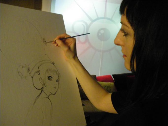 Keywords: Camilla d'Errico Painting.JPG en Camilla d'Errico painting live own Adapiadm 2009-12-19 Photographs of painters at work