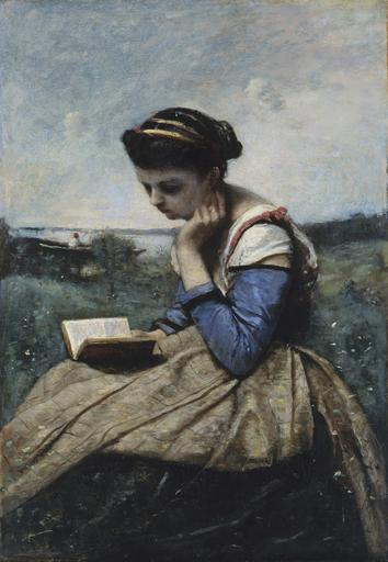 | Keywords: Camille Corot - A Woman Reading - The Metropolitan Museum of Art.jpg en Camille Corot A Woman Reading The Metropolitan Museum of Art Oil on canvas 21 3/8 x 14 3/4 in 54 3 x 37 5 cm 1869/1870 http //www metmuseum org/collection/the-collection-online/search/435991 Metropolitan Museum of Art Creator Camille Corot other versions <gallery> File Jean-Baptiste-Camille Corot 031 jpg </gallery> Custom license marker 2015 02 07 PD-old-100 Portrait paintings by Jean-Baptiste-Camille Corot 1869 Femme Lisant Females reading in Jean-Baptiste Camille Corot's paintings 1869 Femme Lisant Realist portrait paintings Corot Three-quarter view portrait paintings of women facing left Corot Paintings of sitting women reading outdoors Oil paintings of women Women hands French paintings in the Metropolitan Museum of Art Corot 1869 paintings Salon of 1869 Paintings uploaded by Chris Woodrich |