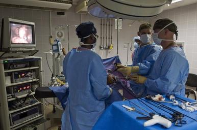 | Keywords: Camp Lemonier Sailors perform surgery at Peltier Hospital DVIDS129743.jpg en Cmdr Thomas Nelson a general surgeon and Lt Robert Roadfuss an operating room nurse both assigned to Camp Lemonier discuss proper procedures while performing a laparoscopic cholecystectomy surgery at Peltier Hospital Nelson Roadfuss and other Camp Lemonier surgeons travel to Peltier three times a week to assist Djiboutian doctors with surgeries and other complex medical procedures <br>Unit Navy Media Content Services 2008-11-17 Petty Officer 2nd Class Marc Rockwell-Pate https //www dvidshub net/image/129743/camp-lemonier-sailors-perform-surgery-peltier-hospital 081118-N-+++++-568 2011-11-09 03 21 DJIBOUTI DJ PD-USGov-Military-Navy Camp Lemonnier Images from DoD uploaded by Fæ |