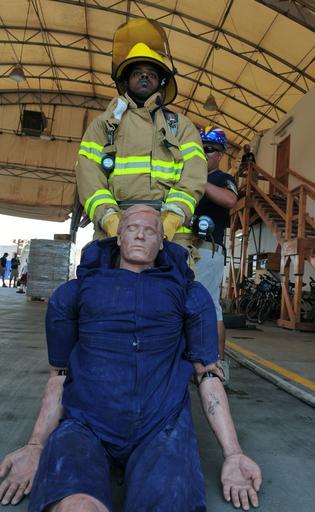 Keywords: Camp Lemonnier activity DVIDS272751.jpg en A Djiboutian national hoping to be recruited by the Camp Lemonnier Djibouti fire department drags a 180-pound mannequin while participating in CLDJ's firefighter agility drill April 24 The agility drill is an obstacle course that tests the endurance strength and basic skills of firefighters and is used as a benchmark for potential firefighter recruits 2010-04-24 Petty Officer 2nd Class Marc Rockwell-Pate https //www dvidshub net/image/272751 100424-N-+++++-100 2010-04-24 11 34 CAMP LEMONNIER DJ PD-USGov-Military-Navy Camp Lemonnier Images from DoD uploaded by Fæ