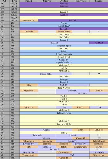 Keywords: Campania2.jpg en Multiplex assignations in Campania it Distribuzione multiplex digitale terrestre in campania My computer Me 2010-03-19 Television channels from Italy Tables information