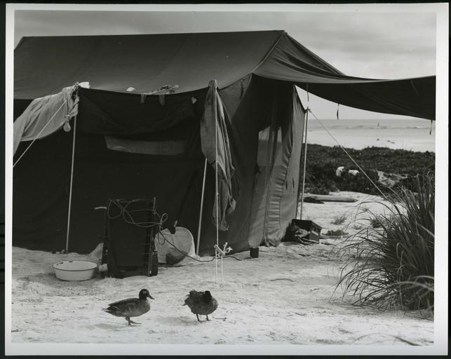 Keywords: smithsonian institution smithsonianinstitution smithsonian institution archives smithsonianinstitutionarchives 2012_12 201212 surreal photo border Creator: David B. Marshall Local number: SIA2011-1437 Summary: Campsite of refuge inspection team at Hawaiian Islands National Wildlife Refuge, June 16, 1962, Pacific Ocean Biological Survey Program. The caption on the back of this photograph reads, "The Laysan ducks showed no fear and were regular visitors about the tent...attracted by the pan of fresh water." Dates: 1962 Collection: RU 000245 National Museum of Natural History (U.S.) Pacific Ocean Biological Survey Program, Records, circa 1961-1973, with data from 1923. Box 230, Folder 4. Repository: Smithsonian Institution Archives Related blog post: Life in the Field: a Reflection on Cataloging Field Notes in the Pacific Ocean Biological Survey Program View more collections from the Smithsonian Institution. Creator: David B. Marshall Local number: SIA2011-1437 Summary: Campsite of refuge inspection team at Hawaiian Islands National Wildlife Refuge, June 16, 1962, Pacific Ocean Biological Survey Program. The caption on the back of this photograph reads, "The Laysan ducks showed no fear and were regular visitors about the tent...attracted by the pan of fresh water." Dates: 1962 Collection: RU 000245 National Museum of Natural History (U.S.) Pacific Ocean Biological Survey Program, Records, circa 1961-1973, with data from 1923. Box 230, Folder 4. Repository: Smithsonian Institution Archives Related blog post: Life in the Field: a Reflection on Cataloging Field Notes in the Pacific Ocean Biological Survey Program View more collections from the Smithsonian Institution. |
